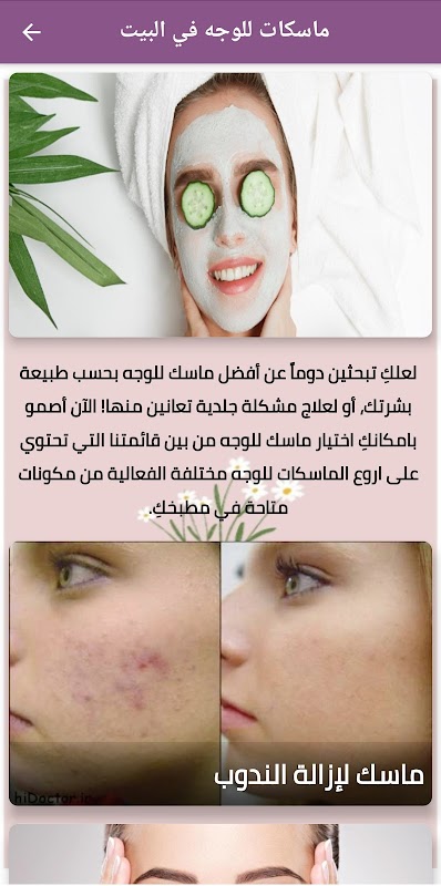 كما يحتوي على ماسكات للبشرة الجافة ولجميع انواع البشرة ايضا كما يوجد نصائح للبشرة يمكنك اتباعها للمحافظة على نضارة بشرتك