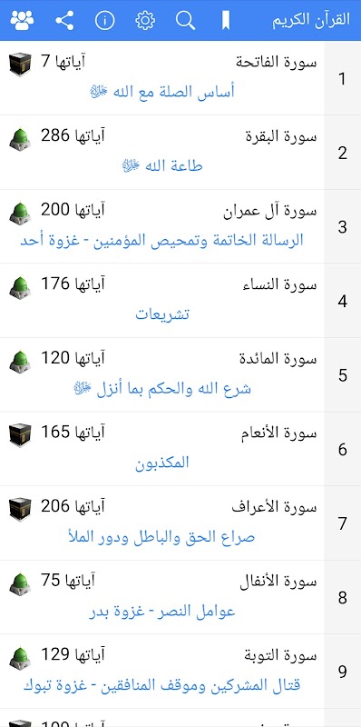 Through this application, we aim to find a simplified formula for understanding the Noble Qur’an by clarifying the main idea and the main and sub-themes for each surah, in addition to the meanings of words, interpretation of verses, the virtue of the surah with authentic hadiths, if any, and the reasons for the correct revelation, if any, in addition to the search feature in the Holy Qur’an.
