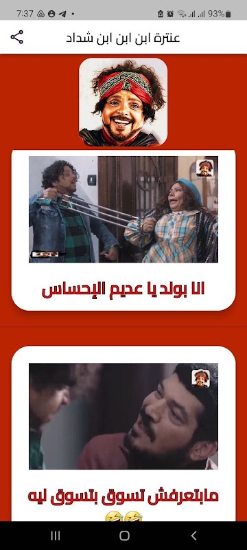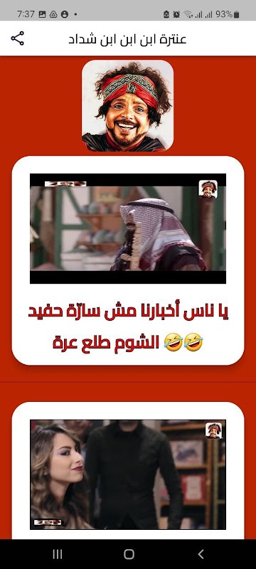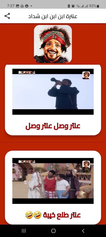An application that displays video clips of Muhammad Henedy from the movie Antar Ibn Ibn Ibn Shaddad without the Internet