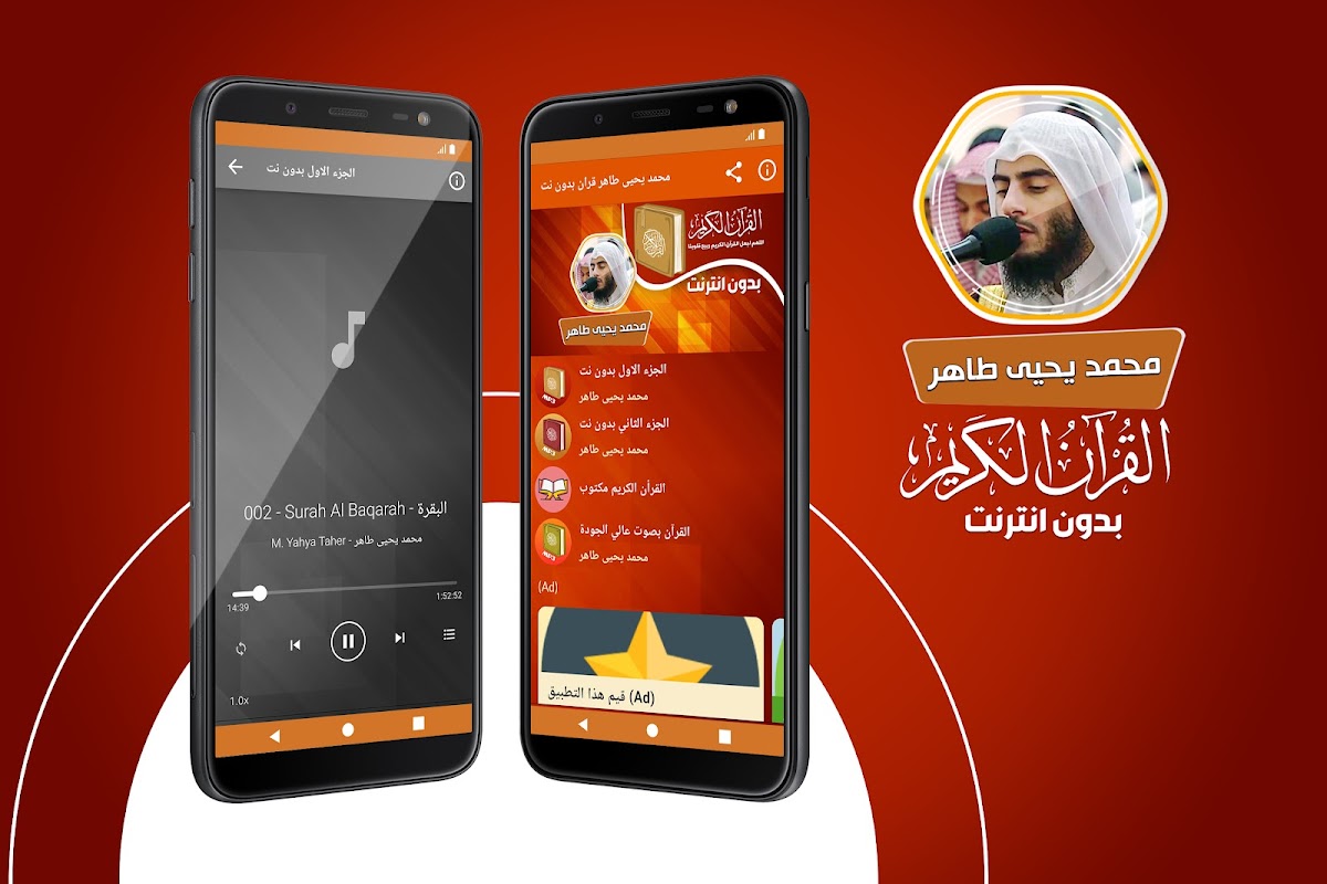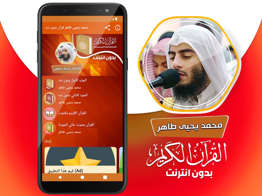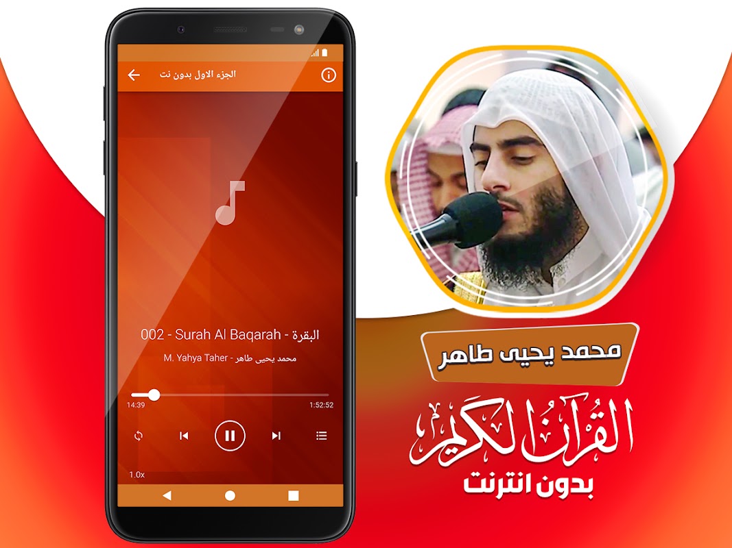 🔹 The Holy Quran application contains the voice of the reciter Muhammad Yahya Taher, listening to the surahs of the Qur’an without internet and it is characterized by this application for free recitation of the Qur’an.