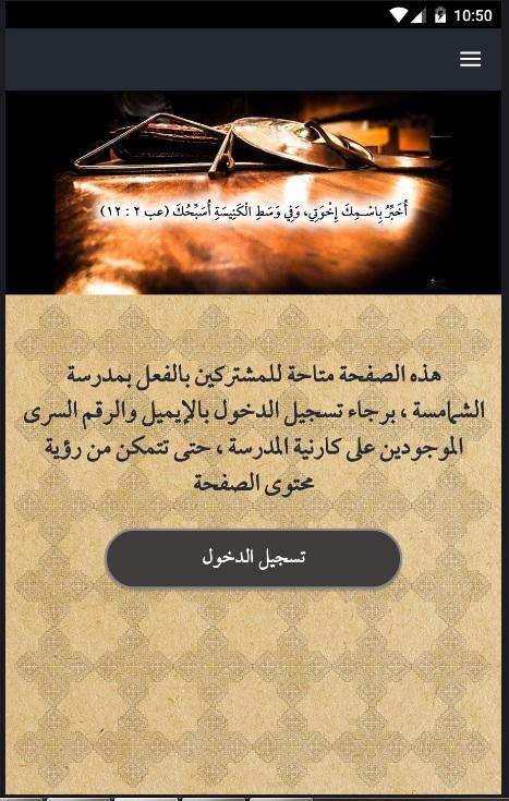 ولكى تتمكن من رؤية جميع محتوى التطبيق يجب عليك تسجيل الدخول عن طريق إسم المستخدم وكلمة المرور الموجودين على كارنية المشترك الذى يتم تسليمه فى بداية المدرسة.