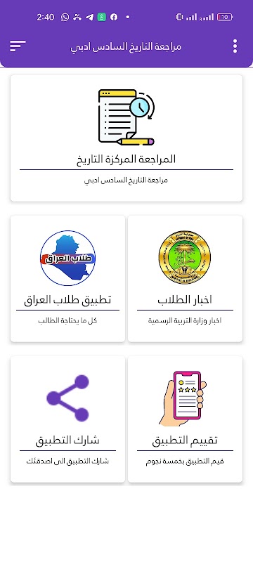 التاريخ سادس ادبي هو تطبيق أندرويد لقراءة المادة على الإنترنت بصورة مبسطة .
