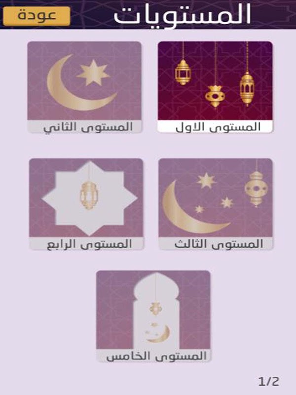 - تحتوي على خمس مستويات في كل مستوى عشر اسئلة.