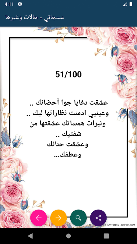 تطبيق يحتوي على مكتبة ضخمة من الرسائل والمسجات النصية المنوعة، ويعمل بدون اتصال بالإنترنت.