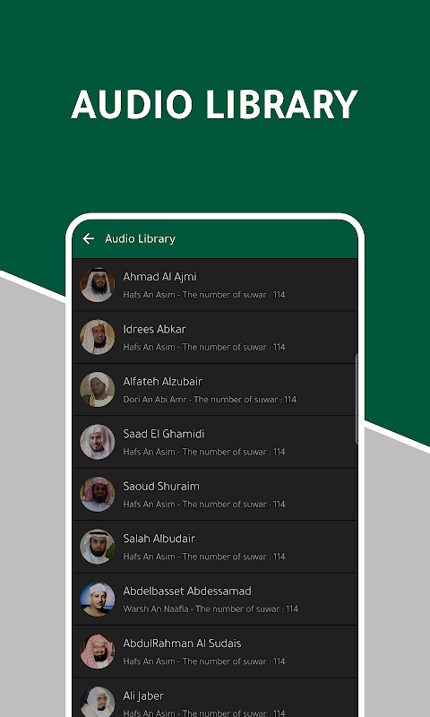 - You can listen to all the Holy Quran by a lot of reciters such as Mishary Al Afasy, Abd Albaset Abd Ssamad, Omar Al Kazabri, Ahmed Al Ajmi, Abderrahman Soudais
