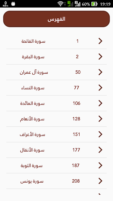 4- وجود فهرس للسور مع إمكانية الانتقال للسور من خلاله.