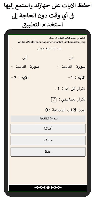 كملف MP4: احفظ الآيات بصوت القارئ المفضل لديك على هاتفك أو جهازك للاستماع إليها في أي وقت.