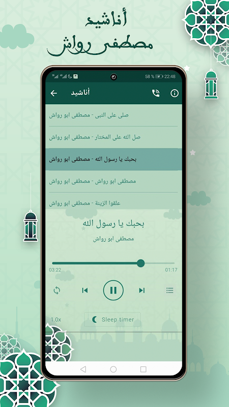 امكانية متابعة الاستماع الى اناشيد مصطفى ابو رواش من المكان الذي توقفت عنده اخر مرة.