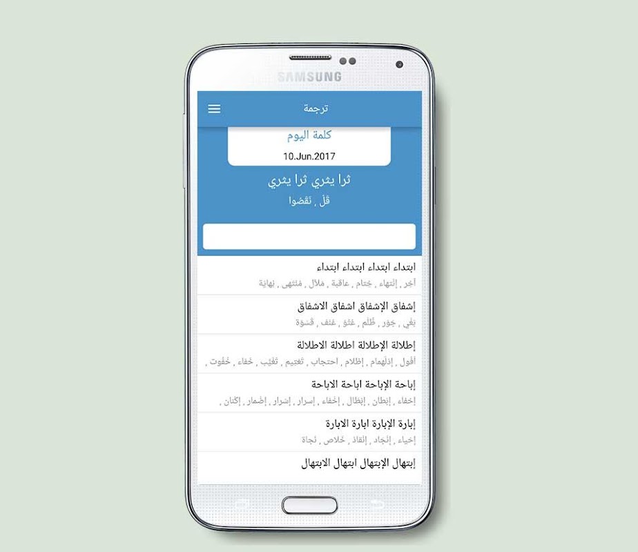 An Arabic-Arabic dictionary that contains results from the intermediate dictionary, the rich dictionary, and the leading dictionary Arabic, French, Spanish, English, Turkish, German