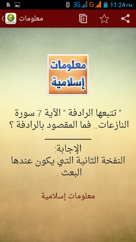 ملحوظة: لتفعيل خاصية ارسال كل يوم معلومة إسلامية ادخل على معلومة اليوم أول مرة من داخل التطبيق بعد تحميله