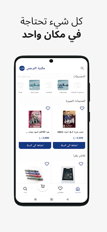 The Narjis Library application is your gateway to purchasing books, binders, and stationery!