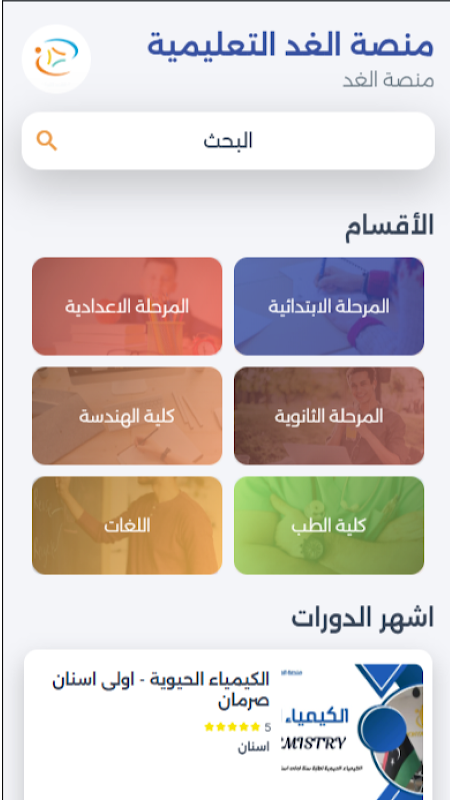 Al-Ghad Educational Platform offers an integrated package of methodological courses presented by a group of distinguished teachers. These courses aim to provide students with the knowledge and skills necessary to achieve academic excellence and professional success. The platform provides a wide variety of study subjects and specializations, allowing students to choose what meets their interests and is in line with their educational goals. The platform is distinguished by providing interactive tools and innovative educational resources, which enhances the effectiveness of the learning experience and makes it more attractive and enriching.