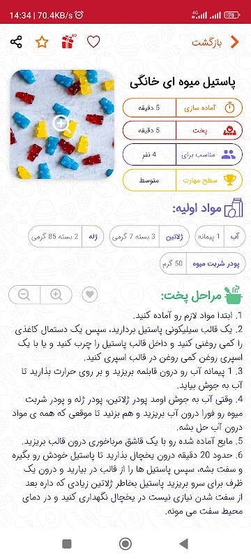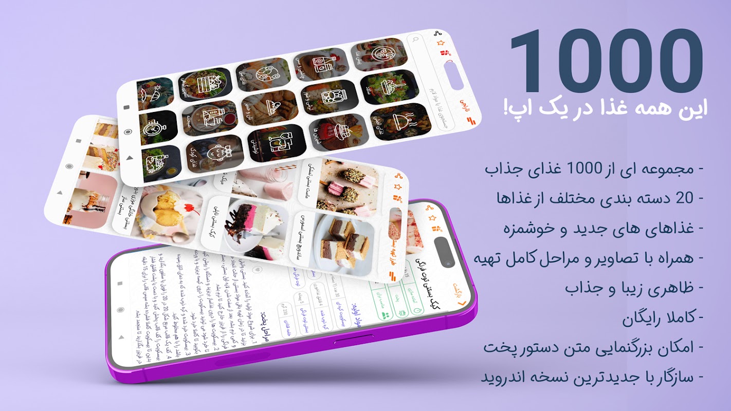 مجموعه ای عظیم و مرجع از 1000 غذای خوشمزه و متنوع همراه با تصاویر، مواد اولیه، و مراحل کامل تهیه در این اپلیکیشن آشپزی نارنجی گرد آوری شده است. این اپ آشپزی جامع رایگان طراحی زیبایی داشته و با جدیدترین نسخه های اندروید سازگار است. در این برنامه آشپزی نارنجی به زمان آماده سازی، مدت زمان پخت هم اشاره شده است. همچنین شما می توانید غذاهای مورد علاقه خود را نشانه گذاری کنید و به بخش علاقه مندی ها بیفزایید.اگر همیشه این سوال شما را به خود مشغول کرده که غذا چی بپزم این اپ آشپزی نارنجی مناسب شماست!