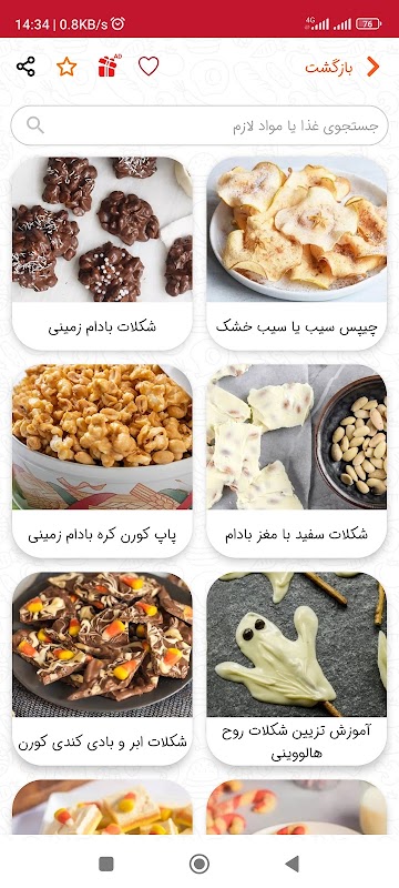 کباب چوبی مکزیکی، شیرینی نوروز مربایی، سالاد مرغ با انگور، مربا گل رز خانگی، ترشی فوری لبو و پیاز قرمز، سیب زمینی تنوری شکم پر، آیس کارامل ماکیاتو، سیب زمینی ویژه با ژامبون و پنیر، ترشی پوست هندوانه، فراپاچینو استارباکس کاراملی، ترشی تربچه فوری، ترشی کلم قرمز با سرکه سیب، کیک قیفی سرخ شده خلالی، اسپاگتی میگو با لیمو و فلفل، دسر پیتزا کوکی پیزوکی، مینی چیز کیک یخچالی، دسر کابلر گیلاس، سس پاستا رژیمی گوجه فرنگی، پای بلوبری خانگی، کیک برفی مغزدار، ساندویچ گریل پنیر، دلمه فلفل دلمه ای خانگی با پنیر، لیموناد هندوانه نوشیدنی خنک تابستانی، موهیتو تازه خانگی، خوراک گوشت و سیب زمینی، ساندویچ استیک گوساله مزه دار شده، پای گیلاس با تاپینگ کرامبل، کیک گیلاس برگردان، کیک بستنی توت فرنگی، بستنی چوبی موزی خانگی، نان قندی خانگی، بیسیک بیسکویتی چیز کیک، چیز کیک گیلاس یخچالی، پای گیلاس اسلایسی، ساندویچ ماست بستنی توت فرنگی، بستنی چوبی خانگی لیمو و نارگیل، بستنی سرخ شده، پودر کوکی آماده خانگی، کوکی بار توت فرنگی خانگی، شیرینی بادام خانگی، پروتئین بار خانگی آسان، رویال آیسینگ و تزیین کوکی، شیرینی پای گردویی خانگی، شیرینی کره ای نروژی با زرده تخم مرغ، بیسکویت خانگی ساده، شیرینی خشک دارچینی خانگی، کوکی با چیپس شکلات، شیرینی رژیمی کم چرب، شیرینی خانگی شکری بدون آرد گندم، شیرینی خانگی کره ای، نان چای کنجدی یونانی، پودینگ برنج یونانی، کوکی کره بادام زمینی کرانچی، کوکی کره بادام زمینی با چیپس شکلات، کوکی بدون فر با کورن فلکس و کره بادام زمینی، شیرینی گردویی برفی مکزیکی، کوکی جو دوسر وگان با کرنبری خشک، کوکی با چیپس سیب زمینی، شیرینی بادامی خانگی، شیرینی کره ای نوروزی، شیرینی با شکلات نعنا، شیرینی کدو حلوایی با آیسینگ، شیرینی وانیلی خانگی، رژیمی شیرینی آجیلی با جو دوسر، شیرینی آجیلی عید نوروز با بیسکویت، کلوچه خانگی با چیپس شکلات، شیرینی زنجبیلی خانگی، شیرینی عسلی هلندی، آیسینگ وانیلی برای کیک یا کوکی، شیرینی ساده عید با چیپس شکلات، شیرینی گردویی کره ای خانگی، شیرینی دنیش عید نوروز، شیرینی رول دارچینی، آبنبات خرده شیشه، آناناس شکری، کاپ کیک شکلات نارگیل، پودینگ شکلاتی وگان، پاستیل میوه ای خانگی، کیک شکلات و دارچین مکزیکی، موس شکلات با شکر رژیمی، ژله چند رنگ اسلایسی، دسر یخچالی پای پودینگ شکلاتی، کیک اسفنجی خانگی بدون بیکینگ پودر، دسر پودینگ کنجد سیاه، دسر چند لایه پنیری وانیل شکلات، پنکیک با آرد گندم سیاه، کاپ کیک توت فرنگی خانگی، دسر کرم لیمو ساده، دسر ژله پنیر خامه ای و تمشک، کیک خانگی روز مرد با طرح سبیل، ژله پوست پرتقال دو رنگ، تزیین کیک سبیل روز پدر، دسر چیز کیک دو رنگ شکلاتی، پنکیک شکلاتی با سس شکلات، دسر اوپرا شیرینی فرانسوی، کیک موزی با خامه موزی، سس شکلات برای تزیین کیک، پای لیمو خانگی با مرنگ، تارت هلو خانگی، کاکائوی داغ خانگی با مارشمالو، کیک فنجونی هات چاکلت، ماگ کیک کره بادام زمینی، شیرینی ناپلئونی با کرم کاستارد، آسان کیک روز مرد، آسان شیرینی خانگی نوروز، ماگ کیک میوه ای در مایکروویو، کیک ناپلئونی خانگی، ساندویچ فرنچ تست نوتلا ولنتاین، اشترودل خانگی نوتلا، اشترودل خانگی با خمیر