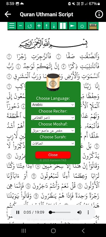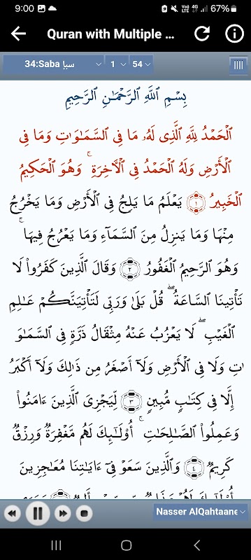 ✔️ The Quran listening 🎶 and reading 📚 section has a floating audio player that allows you to control the Quran audio at any moment.