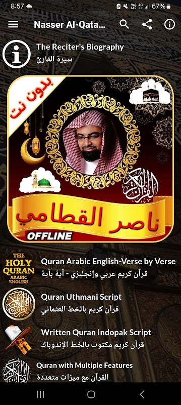 Sheikh Nasser Al Qatami Full Quran Offline with Multilingual Translations