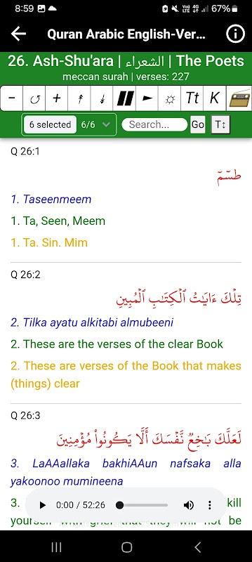 ✔️ Quran reading 📖 and listening 🎶 on a single-page (no need to switch back and forth between activities). You can pause ⏸️ the recitation, carefully study the written Quranic verses/ayats, or change the playback speed of the Quran audio.