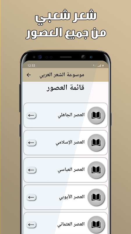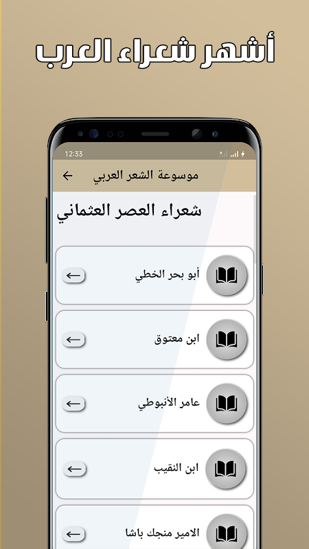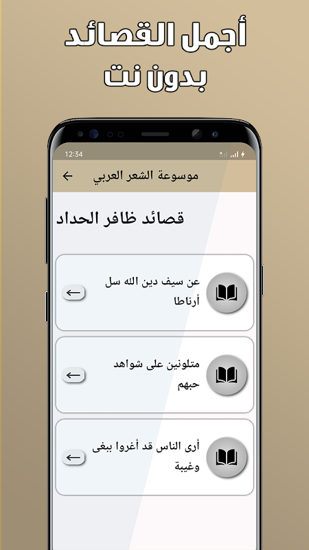 The application includes all collections of Arabic poetry in full, giving you the opportunity to comprehensively explore poetic works and enjoy classic poems. Whether you are looking for a specific poem or would like to explore the works of a specific poet, you can access and browse the poetry encyclopedia easily.