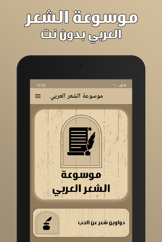 The Encyclopedia of Arabic Poetry without Net is a comprehensive application that includes classical, pre-Islamic, ancient, flirtatious love poetry, Hassani, sad, popular, romantic love, with audio explanation, aims to provide a wide range of Arabic poetry in an encyclopedic format. This application allows you to explore the various literary eras in Arab history, starting from the pre-Islamic era to the Ottoman era and others.