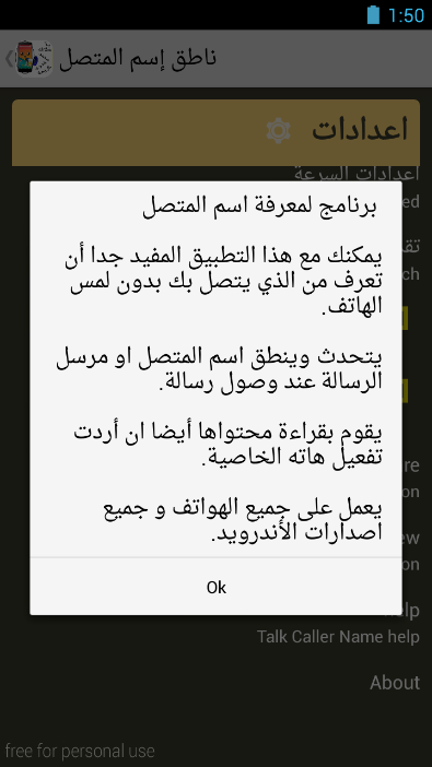 ناطق اسم المتصل هو برنامج لمعرفة اسم المتصل ونطقه تطبيق رائع لنطق اسم المتصل على هاتفك ادا كنت مشغول يساعدك في نطق اسم صاحب الاتصال الوارد لك ادا كنت بعيدا عن هاتفك يساعد تطبيق ناطق اسم المتصل دون تدخل منك