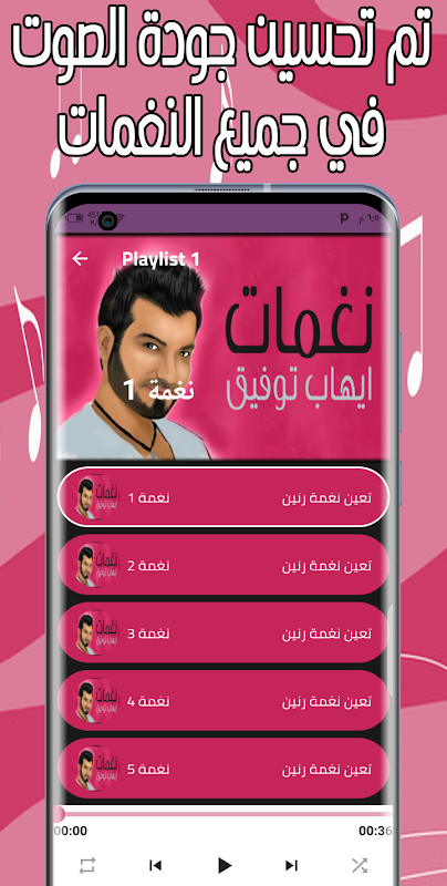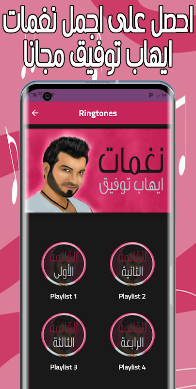 محتويات تطبيق نغمات رنين ايهاب توفيق :