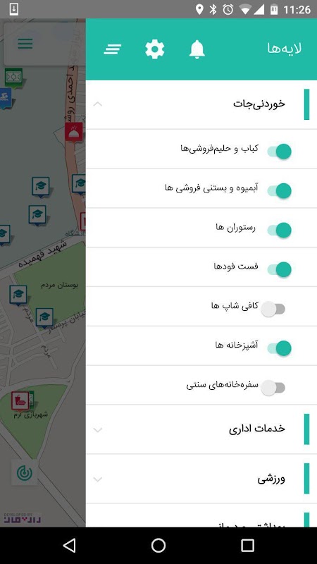 - نقشهی آفلاین معابر و محلات شهر