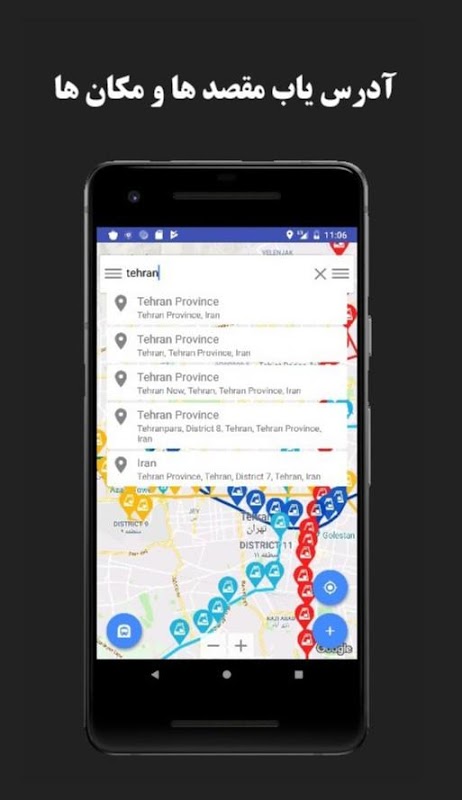 راه یاب، راهنمای رانندگی، آدرسیاب، ترافیک، نقشه، مسیر یاب، ترافیک، مترو تهران