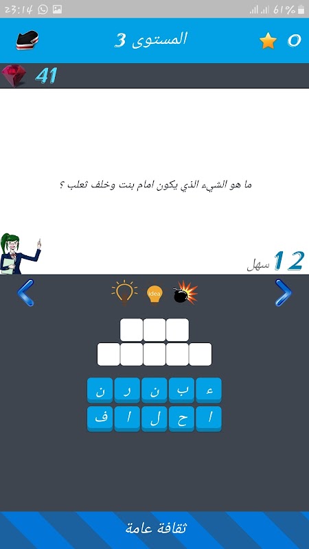 الاحرف بشكل صحيح، حيث أن هذه الأسئلة تتمحور حول الثقافة العامة كالاسلاميات، الجغرافيا، العلوم والرياضة