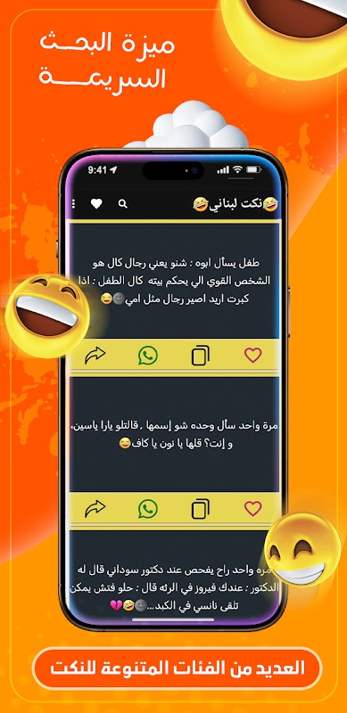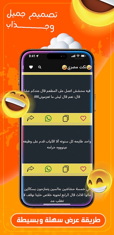 The app contains a large collection of Egyptian jokes, Saudi jokes, and jokes. Iraqi jokes, Lebanese jokes, Yemeni jokes, Syrian jokes, in addition to funny jokes about stoners and crazy people.