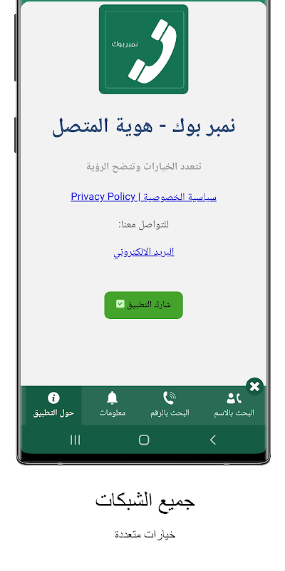 Numberbook to know the identity of the person calling, where you can search the application for a phone number, and it shows you the registered names of this number, which allows you to know the identity of the person calling.