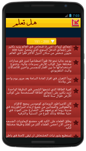 معلومات مفيدة تجعلك تبحر في بحر المعلومات القيمة ، و المستمرة بإذن الله تعالى بفضلكم و بفضل تقييمكم لنا و ليستمر التطبيق في العطاء .