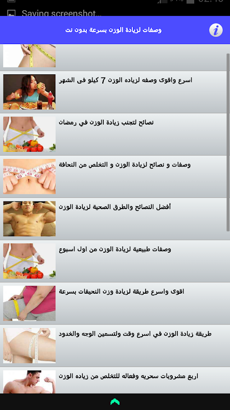 هذا التطبيق يتوفر على وصفات زيادة الوزن وتعليمات إذا اتبعتها ستجعل وزنك يزيد بسهولة وسرعة فائقة