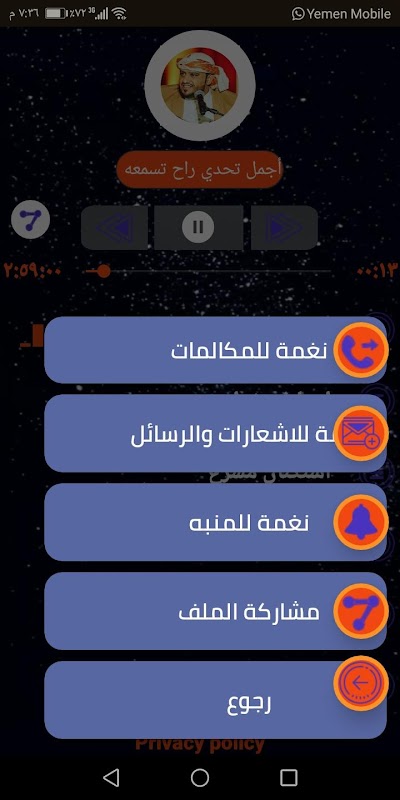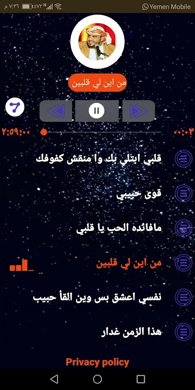 نقدم لكم تطبيق اغاني الفنان اليمني الملقب بالعندليب يحي عنبه والذي لديه اغاني يمنيه متنوعه تراثيه تتميز بخامه صوت جميله تجمع بين الاحساس والحب والحزن كما ولديه نبره صوت جميله ..