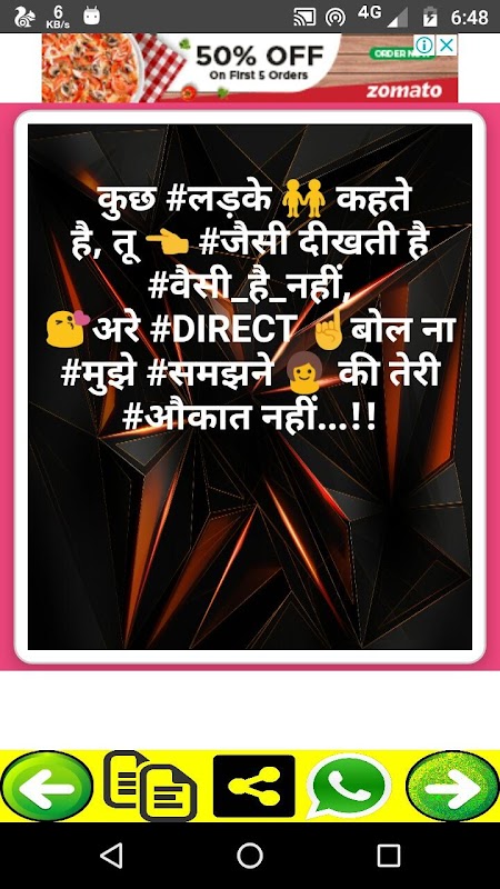 3.Attractive texts with emoji: WhatsApp Status with emoji looks pretty cool attitude status for boys. So we added love attitude status for WhatsApp Hindi with emoji.