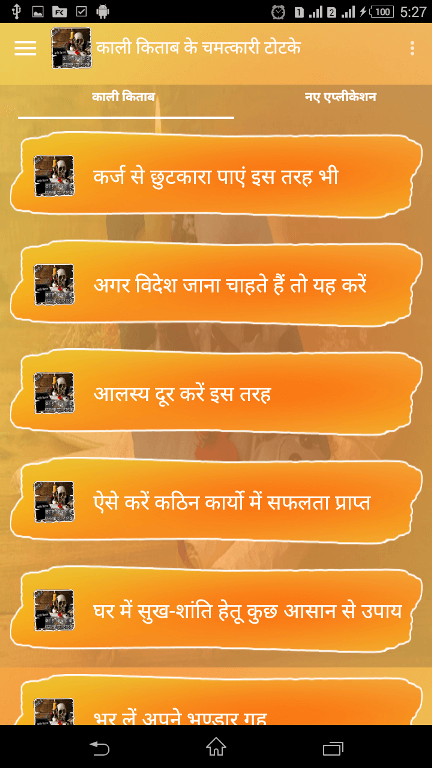 Kali Kitab --This app includes the tricks, tips, totke and tone of black magic or kala jadoo. Many prophet (bhuva) try black magic on people to get his desirable result. Guide book offers tantra , mantra and upay of vashikaran, hypnotism, palmistry and samudrik shashtra. Black magic has rich history in human life and ancient people know the secrete of kali kitab , but nowdays few people know it.