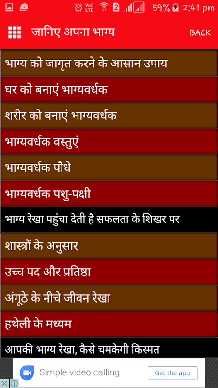 Janiye apka bhavishy or bhagya is app for known about your future . Get your complete and detailed astrology predictions. This free app is a very unique app based on Astrology which allows you to know about your future. This app also give your future details by your name. This application also give you hast rekha gyan and hast rekha shastra gyan which help you to know your future. This application give your lot of tips for making bright your future or tips for bright future in hindi.