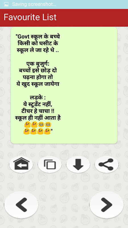 The collection of top most funny & entertainment Hindi Jokes that you can Enjoy sharing with your friends and family members over social networking sites. You can download share or send any joke by just a single tap on social media websites such as Facebook Instagram twitter Linkedin etc as well as on chat messengers such as WhatsApp Snapchat Hike etc. You can also save Jokes as text or as Picture in JPG or PNG Format to your mobile phone internal storage memory or in your cell Phone SD Card and can share later as photo.