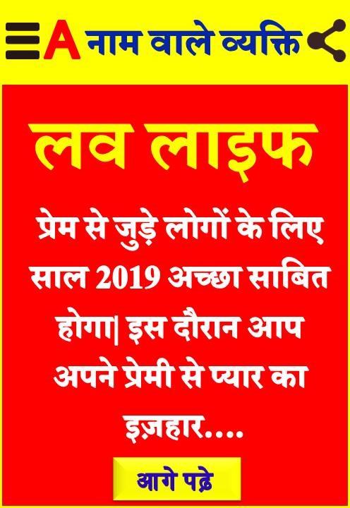 इस एप्प में आपको नाम से जाने अपना भविष्य 2019 से जुडी जानकारी दी गयी है. इसमें आप A से Z अक्षर से नाम वाले लोगो का भविष्यफल आसानी से जान सकते है. साथ ही यह इस ऑनलाइन के साथ ही ऑफलाइन भी प्रयोग किया जा सकता है.