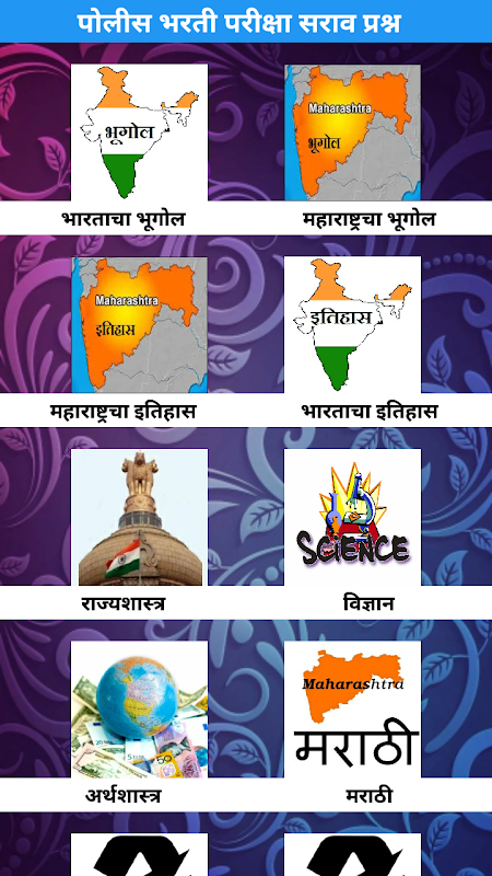 पोलिस भरती 2020 सराव प्रश्न संच उपलब्ध करून दिले आहेत या मध्ये खालील विषयांचा समावेश करण्यात आला आहे