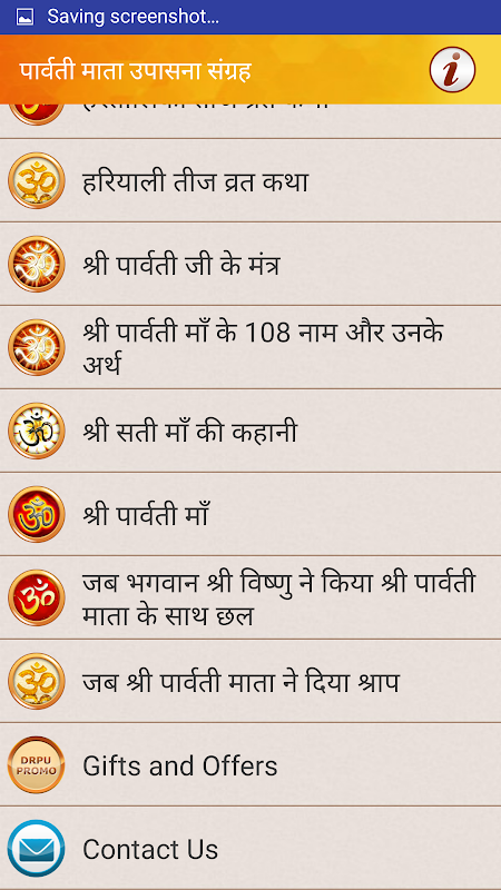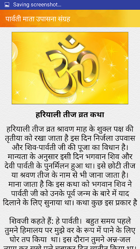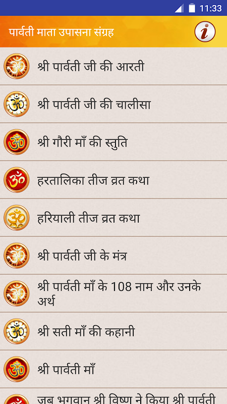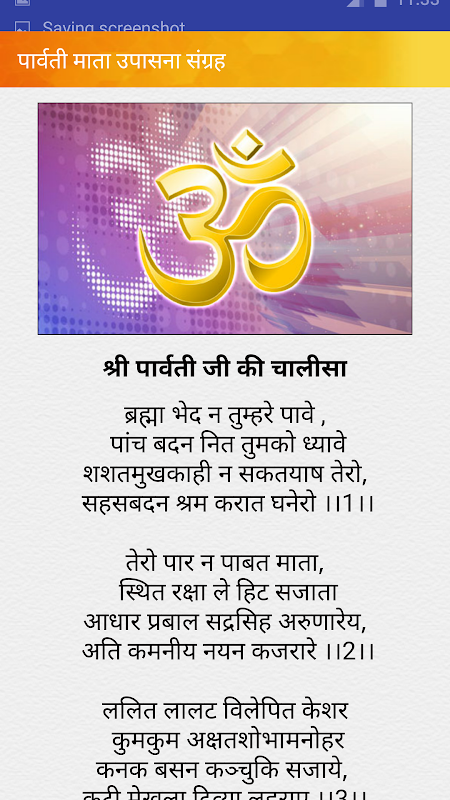 This is a free android app which contains complete collection of aarti chaalisa mantra and vrat katha of goddess shri parvati mata. Parvati also known as Uma is the Hindu goddess of fertility, love & devotion, divine strength and power. Parvati maa is one of the most worshiped goddess of hindu religion. Unmarried girls seek for the blessings of maa parvati to get a caring husband.