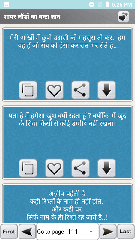 This is a free android app which contains collection of funny cool and sad shayari & love status messages. People these days like to change their status messages on social media every now and then. They love to express their love grief & happiness from their experiences in different relationships more on social networking sites these days.