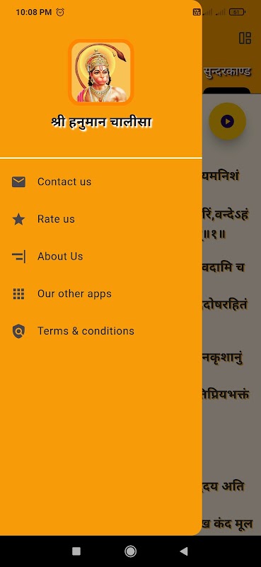 Hindi Audio of all the parts of this Hanuman Chalisa app is available as a feature of the app.