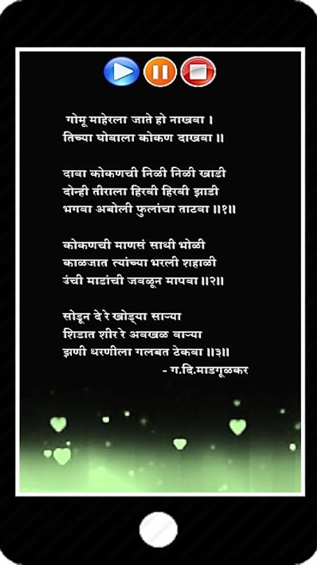 All the poems in class 7th Marathi textbook have been recorded in my voice. There is also proper music. This app is useful for remembering the rhythm of poems and poems for seventh childrens.