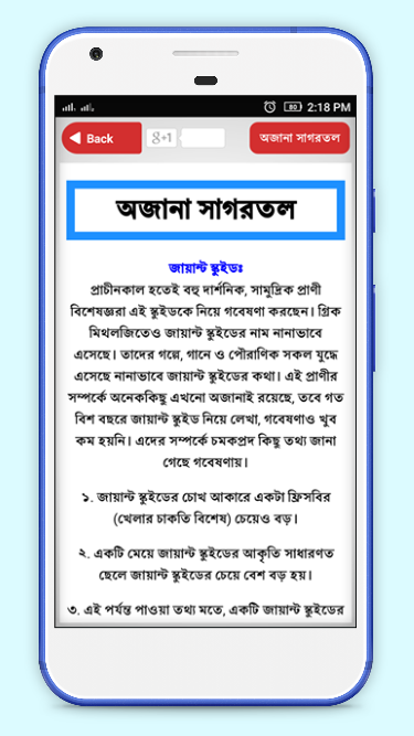 এই পৃথিবীতে সাগরের তলদেশ বন জঙ্গলে অসংখ্য অজানা প্রানি রয়েছে। আর রয়েছে সেই প্রানিদের অজানা সব রহস্য। আজ আপনাদের সামনে প্রানি জগতের সেই অজানা সব তথ্য গুলি নিয়ে হাজির হয়েছি। যে সকল স্টুডেন্ট SSC, HSC, BCS এবং বিভিন্ন ব্যাংক জব এর জন্য লেখা পড়া করছেন তারা এই অ্যাপটি আজই ডাউনলোড করুন। আর প্রানি জগতের অজানা সব তথ্য সম্পর্কে ঘরে বসেই জানুন। বন্ধুরা এই অ্যাপটি ব্যবহার করার জন্য আপনাদের ইন্টারনেট এর প্রয়োজন নেই। এই অ্যাপটি সম্পূর্ণ অফলাইনে কাজ করে। তাই আর অপেক্ষা না করে আজই আপনার মোবাইলে আমাদের এই অজানা সব তথ্য প্রাণী জগত সাধারন জ্ঞান অ্যাপটি ডাউনলোড করে নিন।