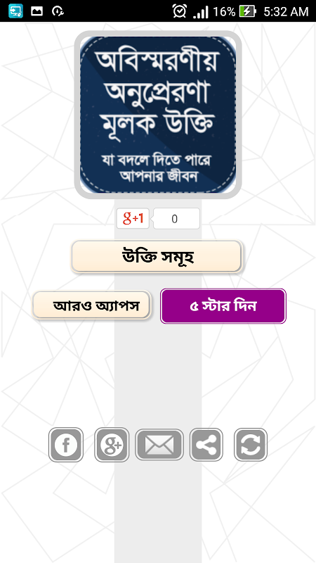 We release this inspirational quotes is really very nice educational apps. Inspirational quotes will motivate our life to take a better action in our life. Inspirational quotes in bangla will help the people who are having less confidence in their life. I would say this inspirational quotes in bangla will help them to build their confidence. We added here the best inspirational quotes about life. People will know how to get success in life and control their lifestyle using this application. They can also use these bangla quotes for facebook status . I can say this bangla bani will take a good part changing your life.