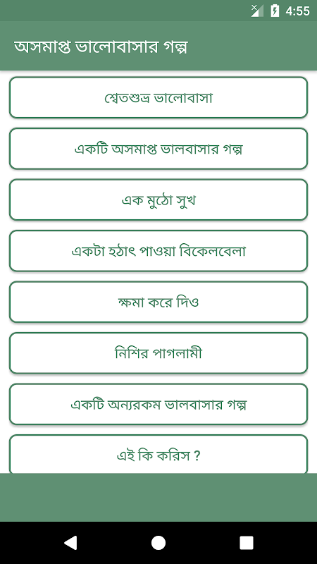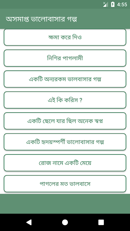 এই অ্যাপটিতে পাবেন প্রেম কাহানীতে কষ্ট থাকবে না সেটা কখনো হয়। আর সেটা আসল প্রেম কাহানী হোক আর গল্প কাহানী হোক। ভালোবাসা শুধু সুখের হয় না, দুখেরও হয়, তাই আমরা সেই দুঃখ কে ভুলাতে নিয়ে এসেছি কিছু সুখ আর দুঃখের কাহানী, কষ্টে ভরা প্রেম কাহানী। ভালোবাসারও প্রেমের সব কষ্টের কাহিনী , ভালবাসার গল্প সকল নিয়ে সাজিয়েছি আমাদের এই অ্যাপ যা সুধু কষ্টে ভরা জীবনের গল্প।ভালবেসে হইত আপনার জীবনও শেষ হয়ে গেছে আর এই অ্যাপ এসেই সব মন পুরা মানুষের জীবনের গল্প দিয়ে এ সাজানো হয়েছে।
