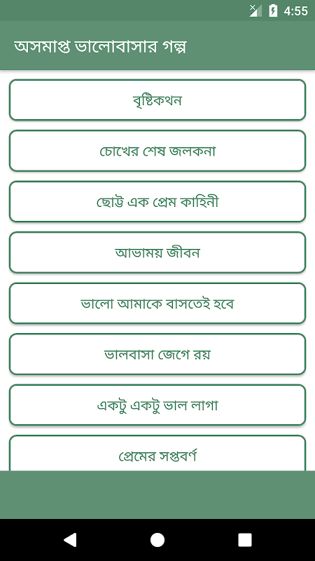 প্রেম ভালোবাসা কখনও কখনও হয়ে উঠে কষ্টেভরা বা বিষাদে ভরা ভালোবাসা।আমাদের এই ভালোবাসার গল্প অ্যাপটি তাদের জন্য যাদের জীবন ভালোবাসার কষ্টে ছেয়ে গেছে । ভালোলাগার কিছু করুন কাহিনী নিয়ে আমাদের এই ভালবাসার গল্প অ্যাপ্সটি করা হয়েছে যা হইত আপনাদের মনের কথা কিংবা হইত আপনার জীবনের সাথেই হইত মিলে যেতে পারে ।