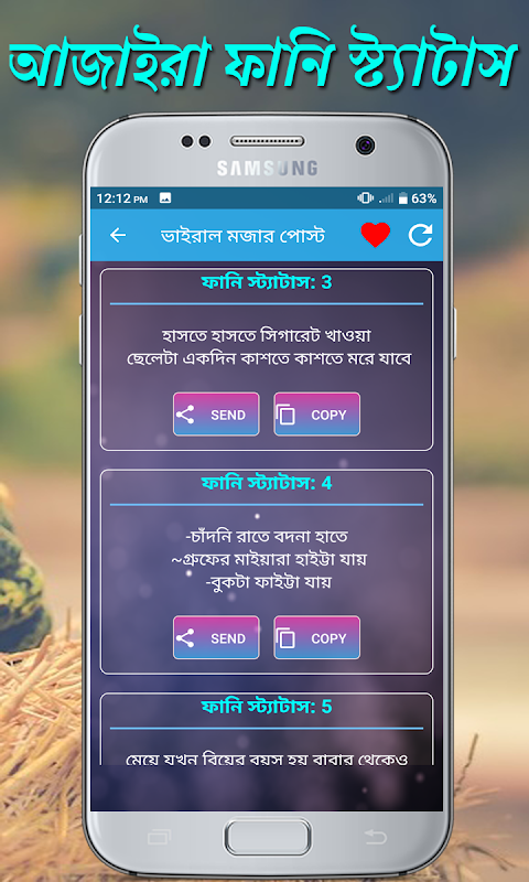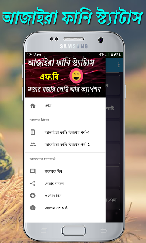 আপনাদের জন্যে নিয়ে এলাম বাংলা হাসির ট্রল আজাইরা ফানি স্ট্যাটাস এই অ্যাপ্লিকেশনটি। এই ফানি অ্যাপটির ক্যাপশন গুলো বিভিন্ন যায়গা থেকে কালেকশন করা এবং একাধিক বার বাছাই করা।