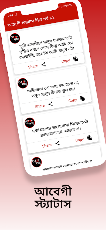 আর এই অ্যাপ এ পাবেন.. " আবেগী কষ্টের স্ট্যাটাস 2025 " হিসেবে ইমোশনাল স্ট্যাটাস পোস্ট করতে পারবেন। পছন্দের আবেগী ক্যাপশন বাংলা / abegi status bangla বা আবেগী ফেসবুক স্ট্যাটাস বন্ধুদের সাথে শেয়ার করতে পারবেন। আবেগী স্ট্যাটাস ক্যাপশন 2025 পিক এর ক্যাপশন দিতে পারবেন।