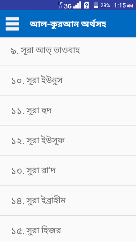 আল আনফাল , আত তাওবাহ্ , ইউনুস , হুদ, ইউসুফ, আর রা'দ, ইব্রাহীম, আল হিজর,